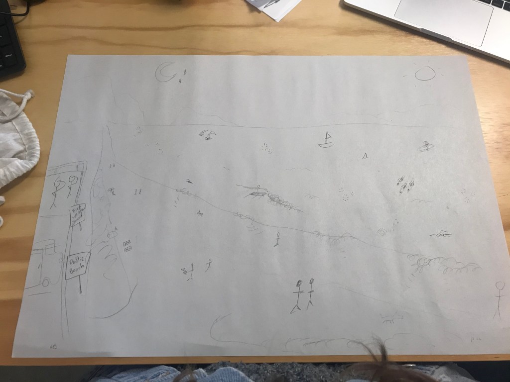 The aspects that I find most attractive within my site are its unpredictable nature, the freedom of bodily movement as a result of the expansive space and the sense of anonymous community. When I enter into the site I create my own pod with my dog or a friend and become part of this anonymous community where you observe and be observed as you move through the space, up and down the beach. I only engage with other pods if an object like a ball crosses into someone else’s pod causing a brief conversation to ensue. I might also head into the water to surf becoming something of a performer to the people on the sand. Being observed more than I am observing. This environment provides a lot more unpredictability to the movements of others around me as well as my own movements. The motion of the ocean is somewhat dictating how we must act/react.