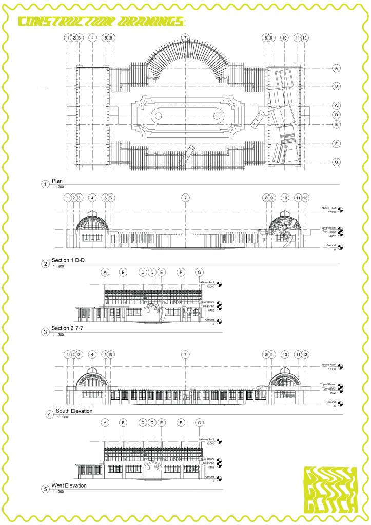 Alternative structures for an elevated platform. Considering material, colour, finish and how it feels to touch as well as structural details and the way it relates to its surrounding structures.