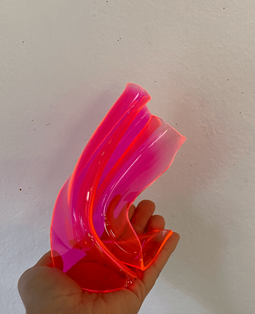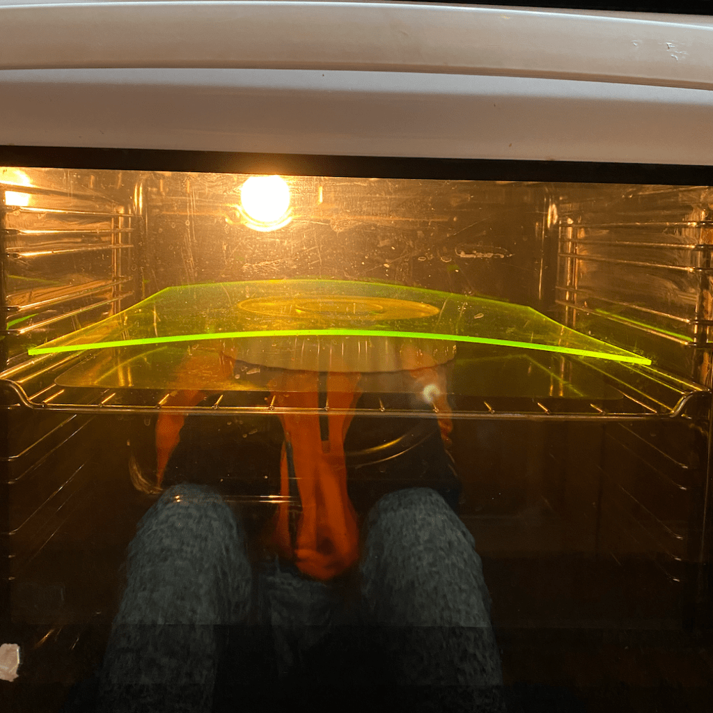 To create the acrylic sculptures the acrylic sheets will have to be heated up and moulded into an interesting fluid form. To make my trial models, I placed the acrylic into my home oven and once it was heated through used heatproof gloves to mould it into interesting shapes.
