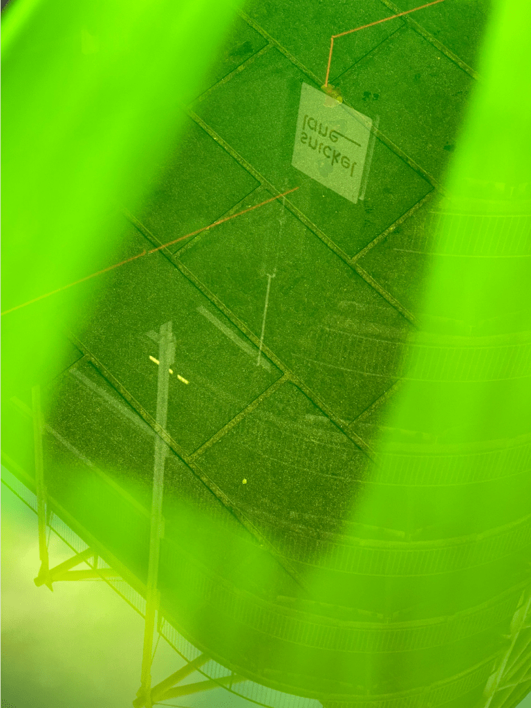 My device was a neon green piece of acrylic, sanded on one side to obscure the transparency. Leaving a small window in the centre I used this device to bring focus to the site.