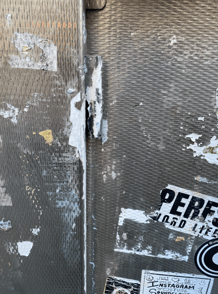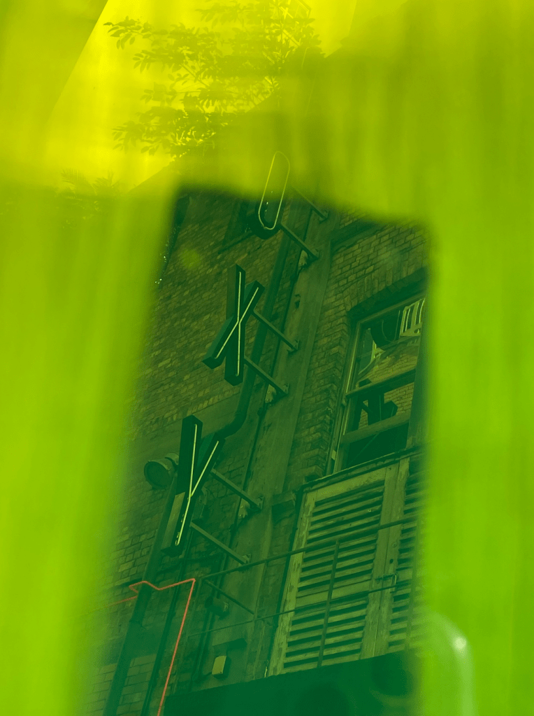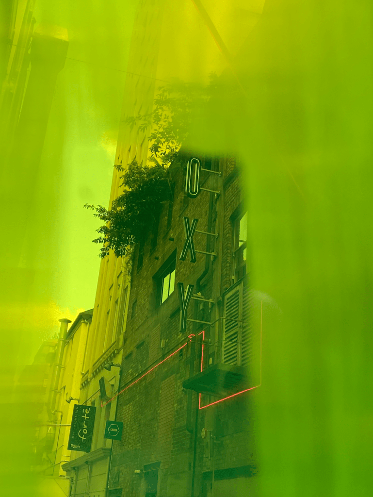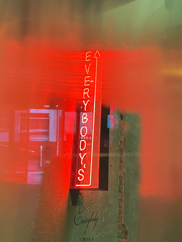 As I began to observe the site through my device I noticed I could play with the smooth side of the acrylic and the sanded side to get different results of what i was photographing. You can see this in the pics of the ‘Everybody’s’ sign.