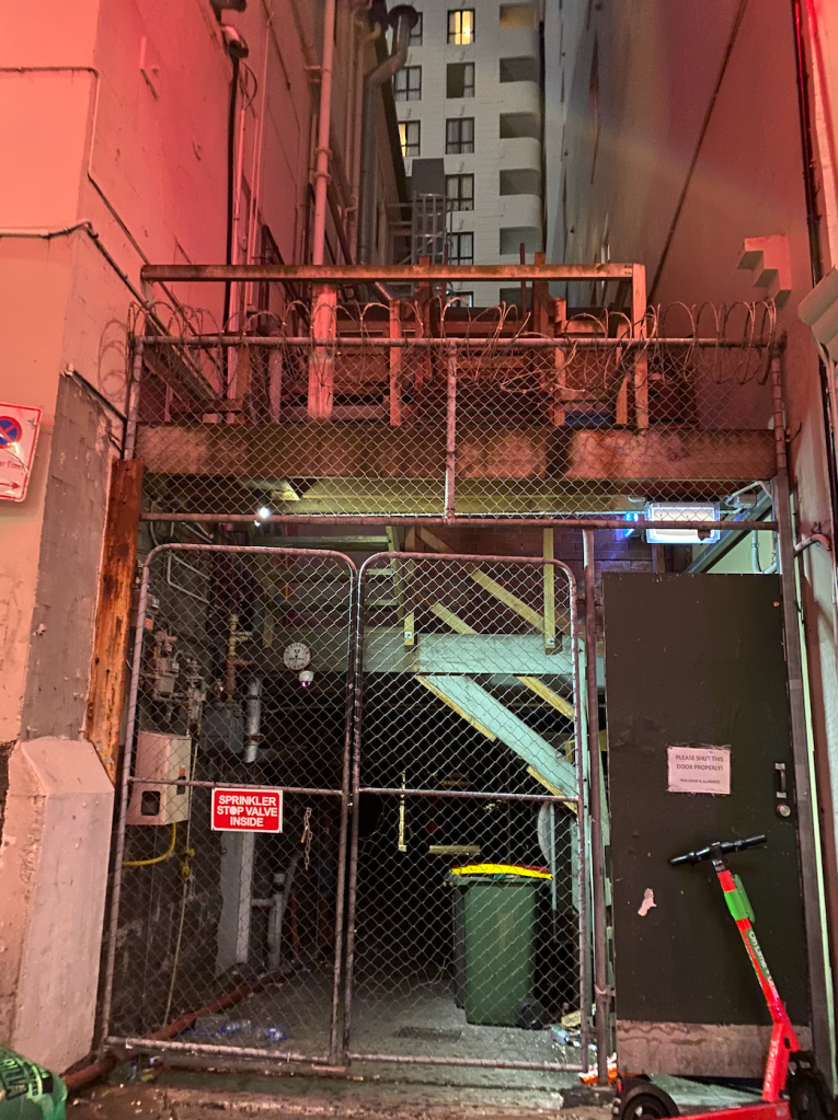 Viewing the lane at night gave me Chicago (the show) vibes or reminded me of the red light district in Amsterdam.