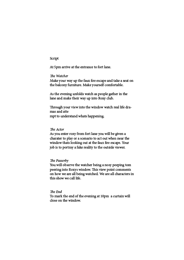 ‘The challenge of this studio brief is for you to imagine the laneway differently and to propose a design for one of the existing buildings, or spaces between or on top of buildings which enhances the public life of Fort Lane. You might also consider designing a temporary event which creates a temporary public.