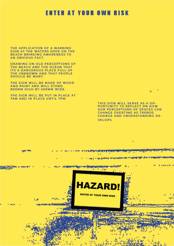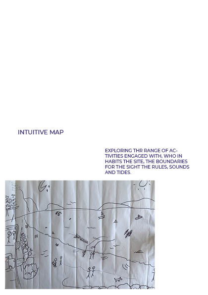 If i was to do this part one again i would buy a sketch book at the beginning of the process so all my sketches, thoughts and research is cohesive with the paper used and is more tactile to leaf through. It would also mean everything would be in one place from the beginning and would have the potential to become evidence of the environment by having spent so much time there. Things like marks from my sweaty hand, drops of salty water, and sand in the spine.