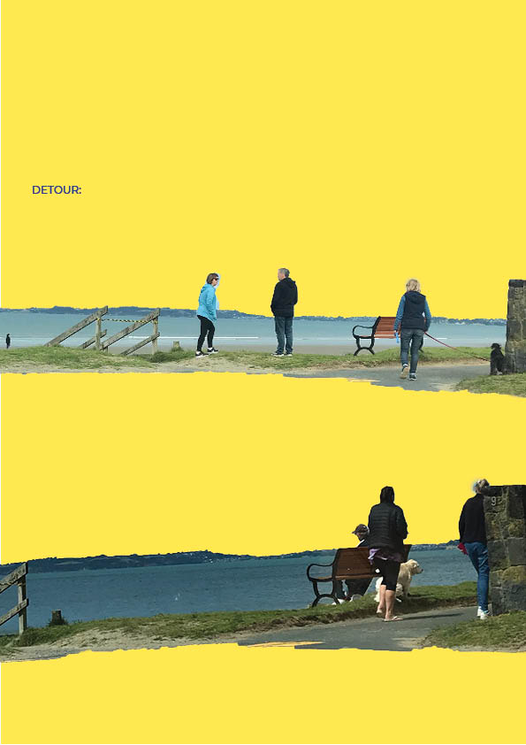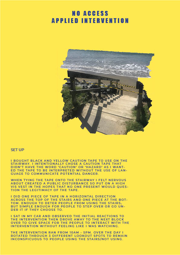 I reworked the layout of my document artefact editing images to give them a more interesting aesthetic and to focus on the main point of the image. I edited the way I described/ explained the interventions going more minimalistic like Allen Kaprows proposals for his happenings. I also played with the layout of the page a bit more using negative space as part of the page layout. This took a few goes playing with colouring the images, using different kinds of image tracing on illustrator and playing with different fonts and colours.