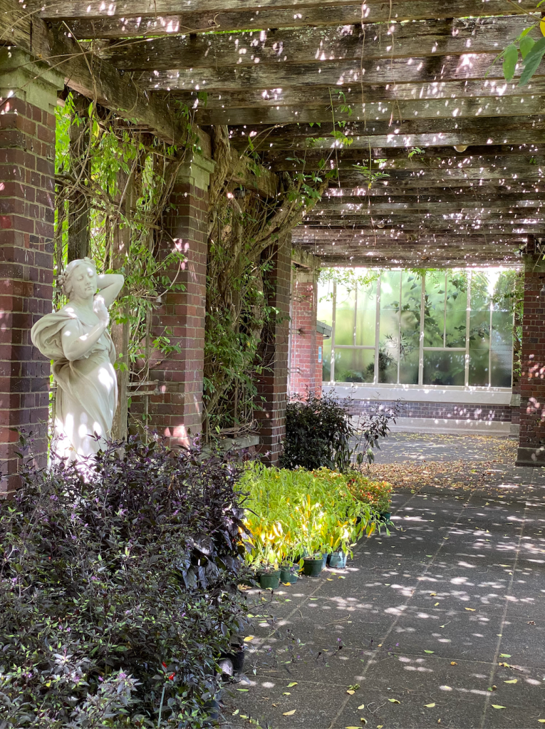One house is heated and shows off lush tropical and heat-loving plants while the other displays temperate plants changing with the seasons. Substantial pergolas link the formal design and host many showy climbers. A wide collection of New Zealand ferns growing in a sunken scoria quarry to the rear completes the Winter Garden complex. – https://www.gardens.org.nz/auckland-gardens/auckland-domain-wintergardens/